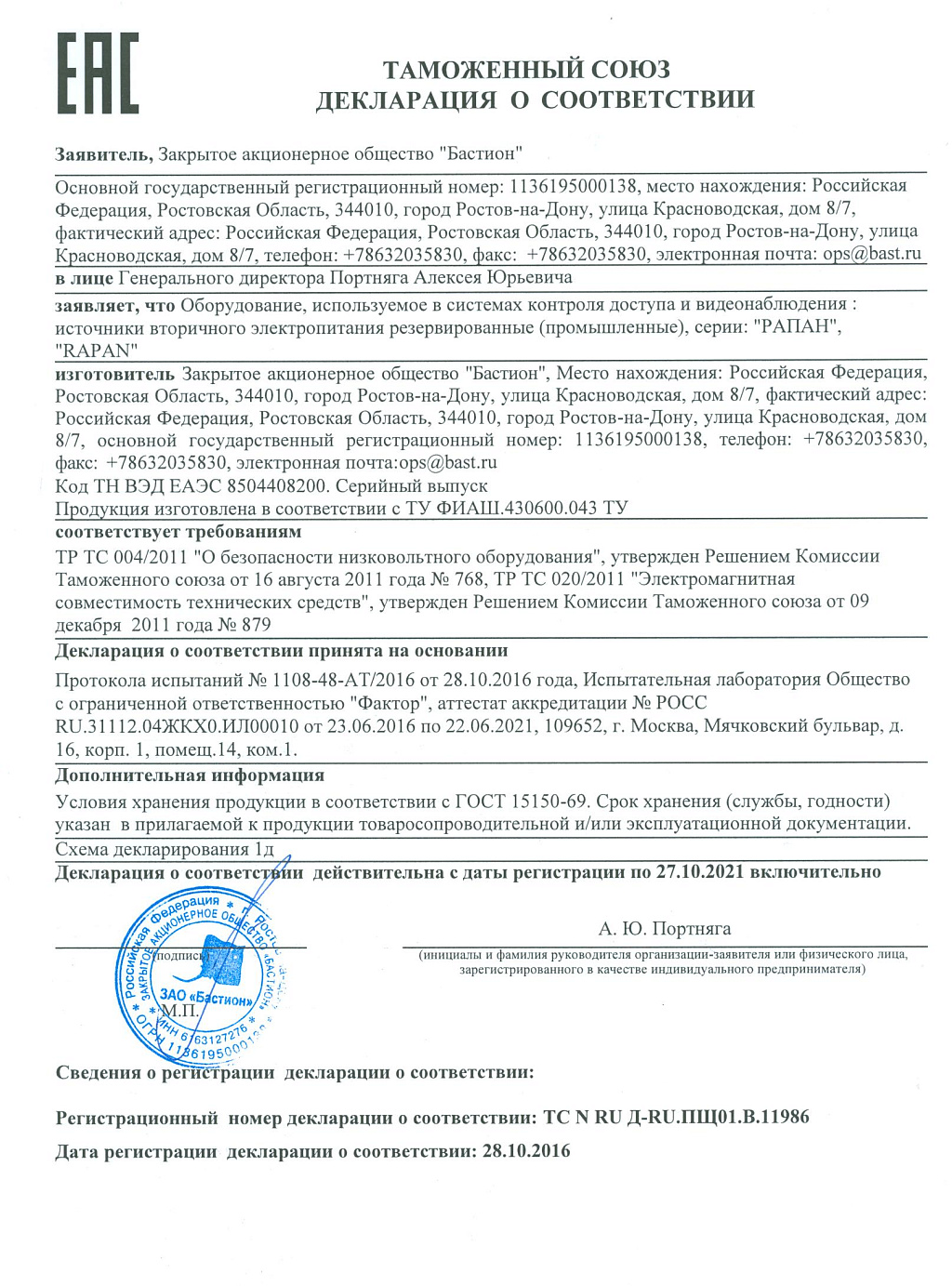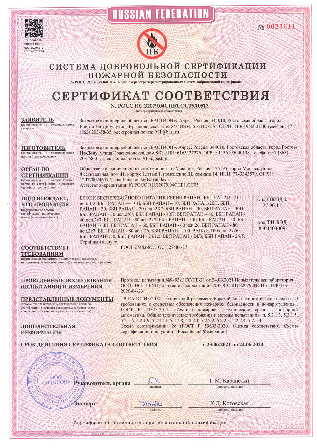 • Производитель Бастион