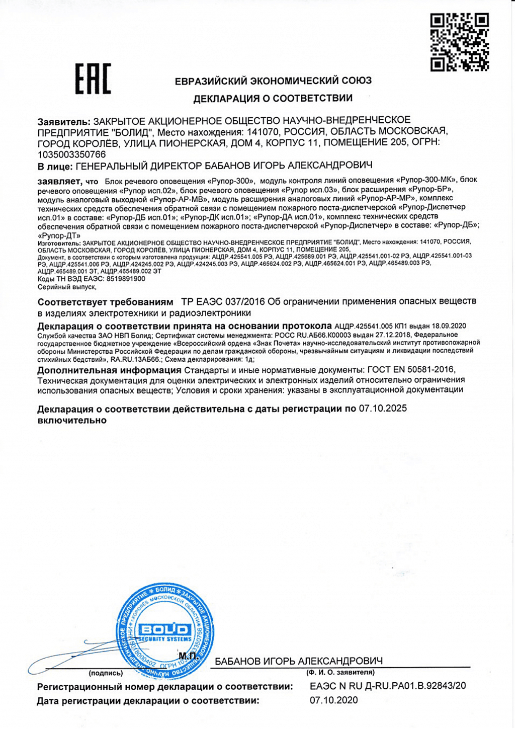 Комплект аналоговых расширителей "Рупор-АР" предназначен для удалённого подключения источника аналогового аудио сигнала к одному или нескольким модулям (блокам) речевого оповещения с возможностью удалённого управления запуском внешнего оповещения.