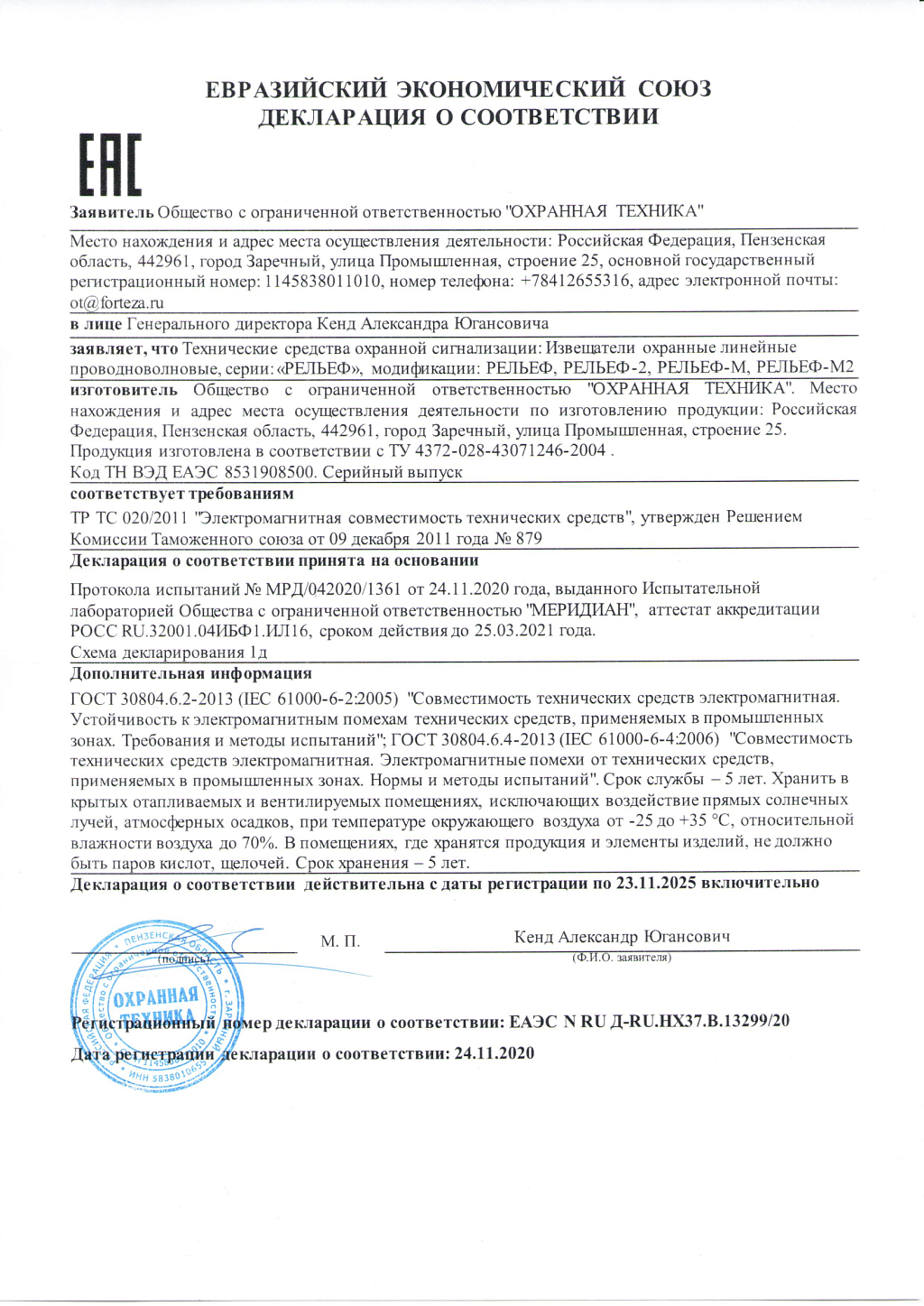 Извещатель охранный линейный Извещатель Рельеф (-50...+80)