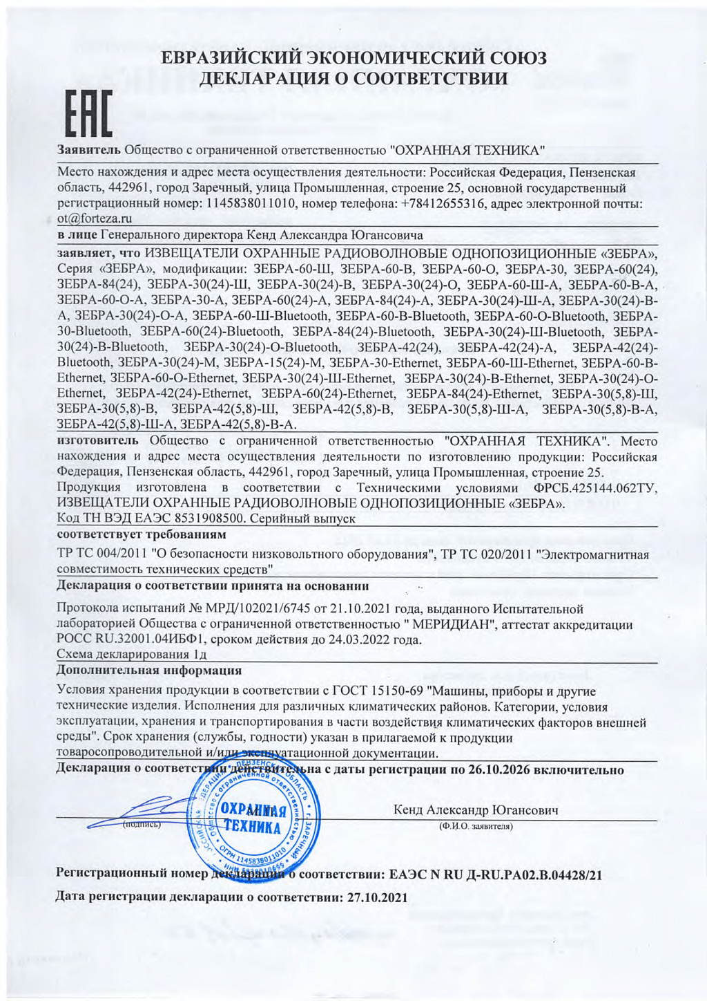 Извещатель Зебра-30 Forteza купить в Перми в компании ВИПАКС.