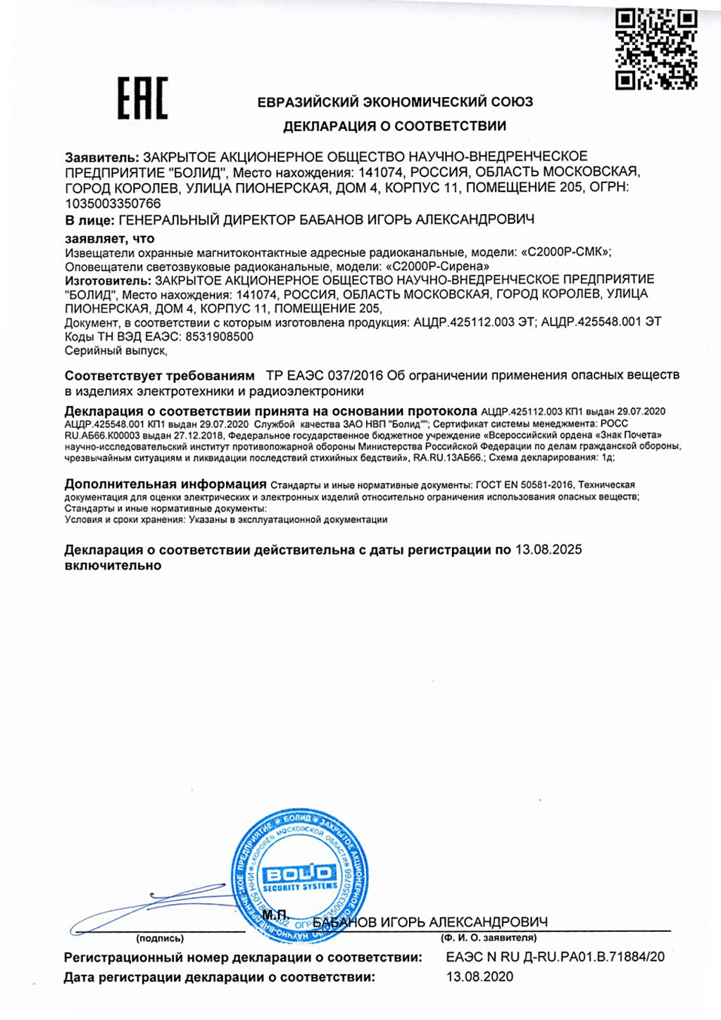 Оповещатель С2000Р-Сирена светозвуковой BOLID