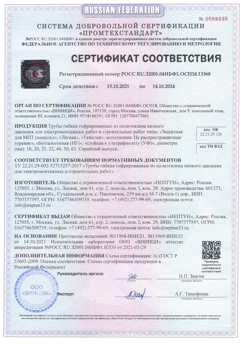 Гофрированная труба из полиэтилена низкого давления отлично подходит для защиты изолированных проводов и кабелей от механических повреждений и агрессивного воздействия окружающей среды при прокладке сложных систем и трасс. Материал изготовления является безгалогенным, что позволяет использовать изделие в общественных местах, с высоким скоплением людей, а стойкость к УФ, позволяет использовать трубу даже на открытом воздухе. Благодаря высокой коррозионной и химической стойкости, трубы из ПНД очень долговечны - срок эксплуатации более 50 лет.