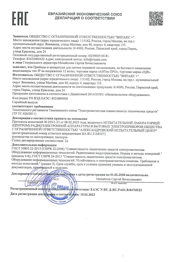 Камера IPe-OP 3,6 АйТек ПРО купить в Перми в компании ВИПАКС.